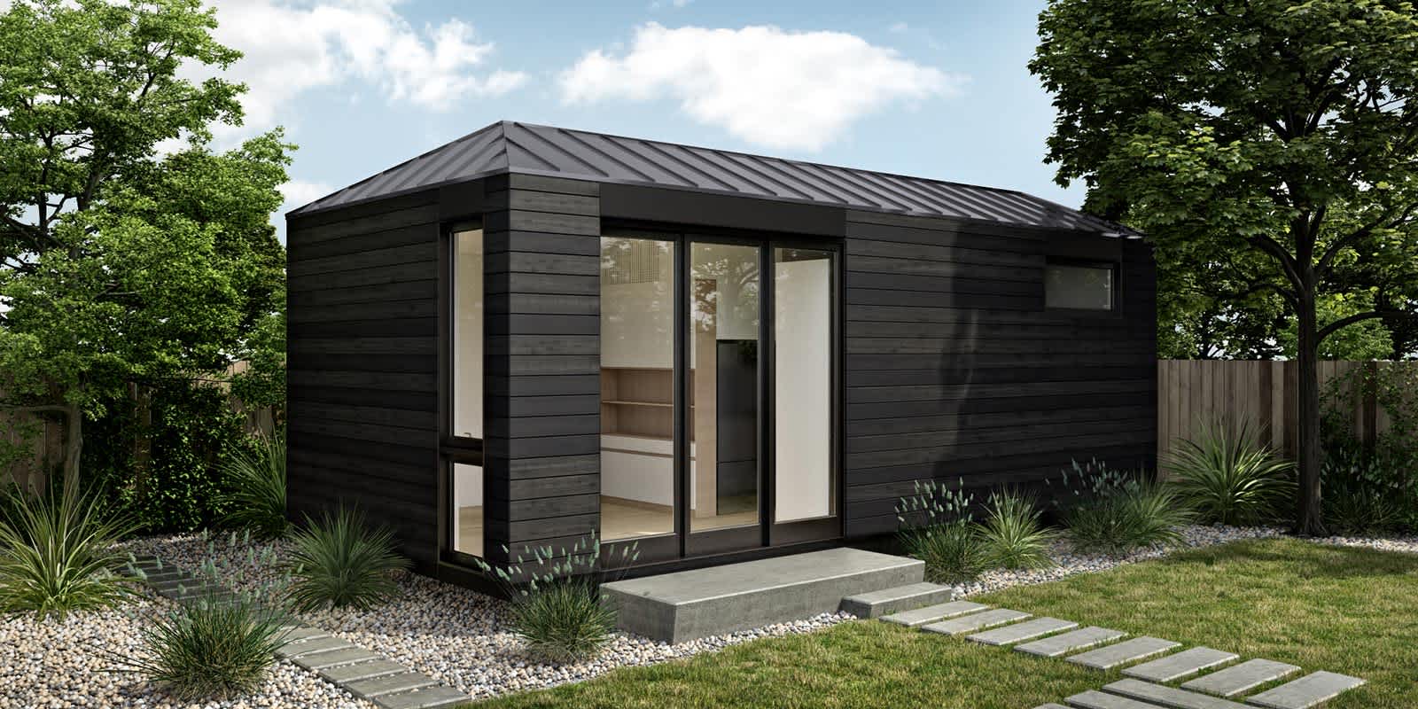 This LivingHome 10 accessory dwelling unit (ADU) was built as a show home, which we debuted at Modernism Week 2020 in Palm Springs (pictured here).